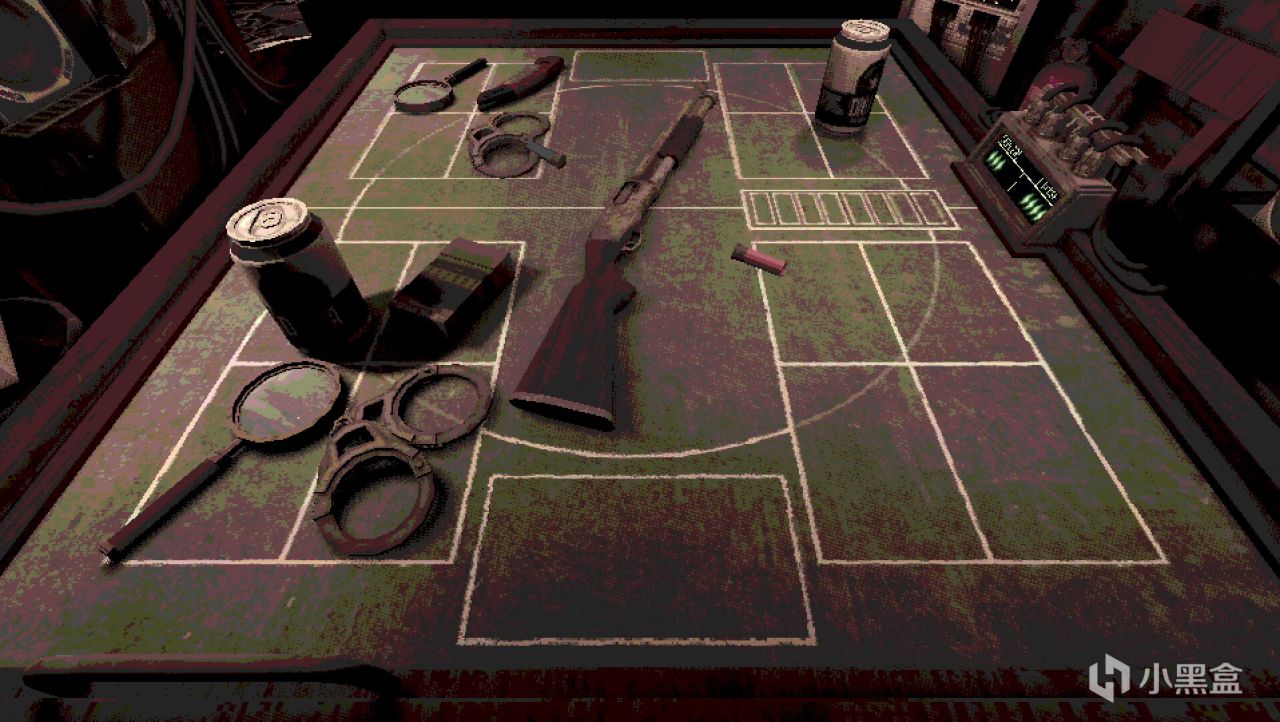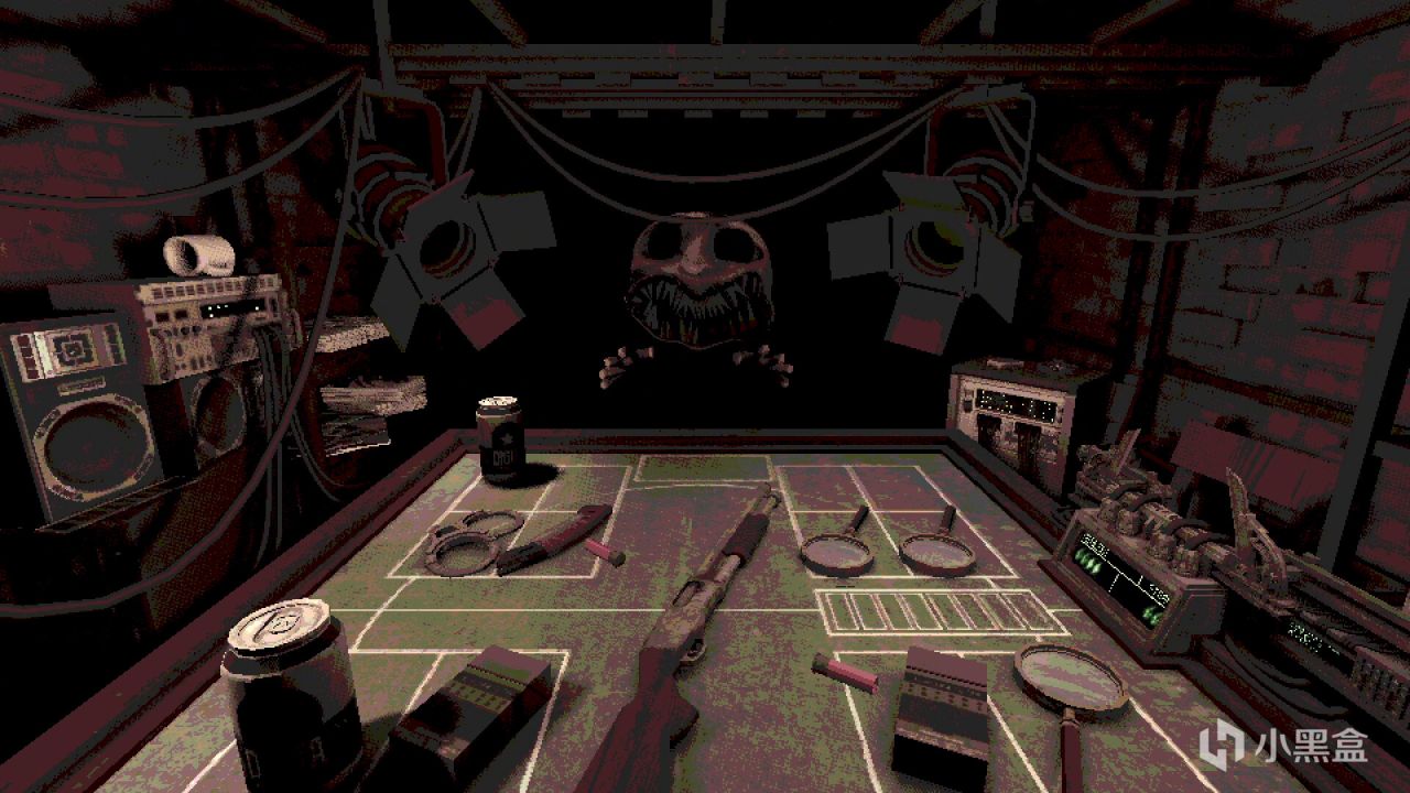 每次玩家率先射击时,他可以选择射击自己或魔鬼。如果他向魔鬼开枪,无论是实弹还是空弹,下一轮就轮到魔鬼开枪了。如果他用空弹射击自己,那就轮到他自己了,魔鬼也是如此。直到任何一方的血量为零,一局游戏结束。中间会有各种道具供玩家使用。虽然对面的AI有点笨,但还是比较看脸的。